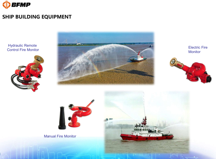 Our company can provide hydraulic fire gun, manual fire gun, electric fire gun and mobile fire gun. At present, the company has been equipped with the fire system of the ship type: multi-purpose offshore work ship, multi-purpose supply ship, offshore oil platform, 10,000-ton chemical ship, full-time fire ship, military ship and so on