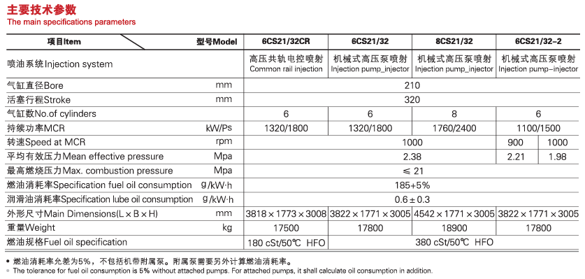 CS21 series diesel engine is developed by 711 institute and foreign famous design institute, with high output power and independent intellectual property rights, and its performance has reached to international leading level. The engine can select of mechanical or high-pressure common rail fuel oil system, will equip with highpressure ratio turbocharger, completely meet Tier II emission standard, and has good economy for lower fuel oil consumption.