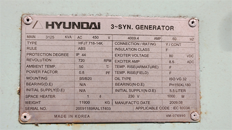 2640KW x 720 RPM,450V,60HZ