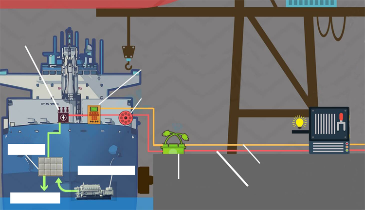 船載裝置:安裝在船舶上用于連接岸電的設(shè)備,一般包括插頭/插座、岸電連接配電柜(板)、變壓器、岸電接入控制屏、岸電電纜和電纜管理系統(tǒng)。
