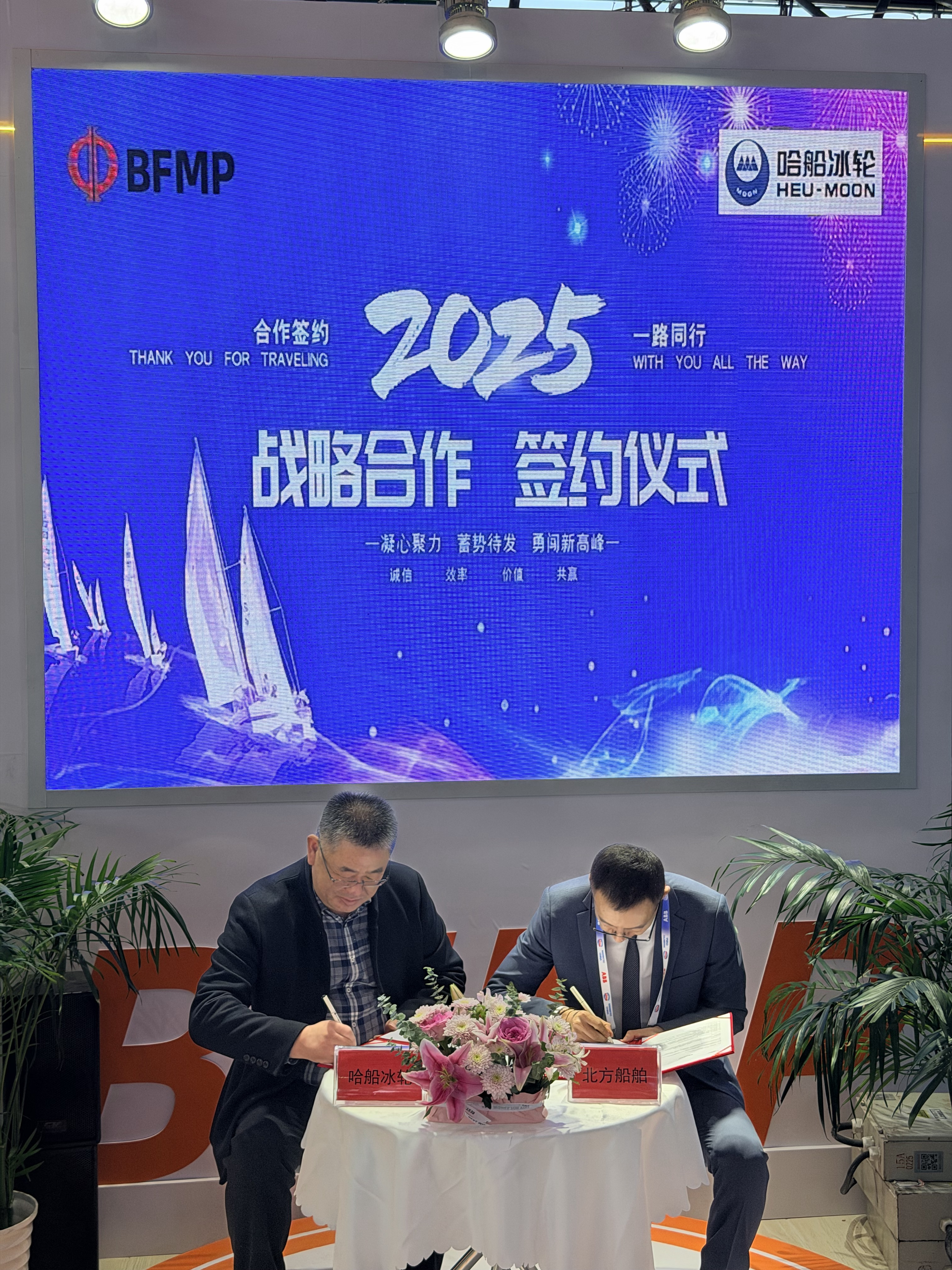 北方船舶與哈船冰輪戰(zhàn)略合作簽約儀式在上海國際海事展圓滿舉行